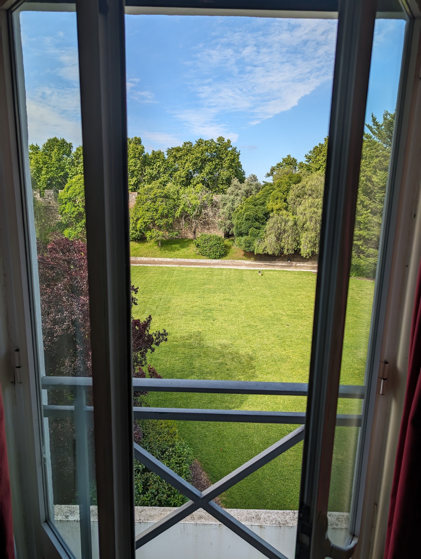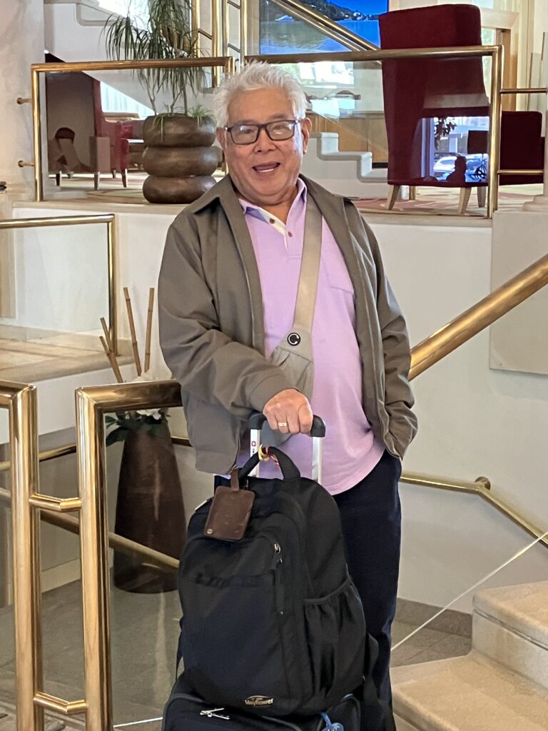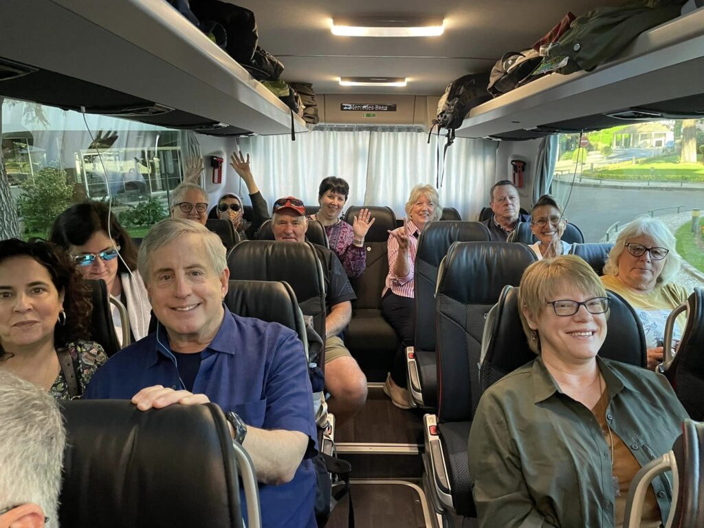 Unfortunately getting to Portugal took most of us two days, several of the group arrived on the third day. But everyone made it! We’ve been to Lisbon, next day enjoyed traveling to Obidos, Nazare (the famous beach town), saw Our Lady of Fatima and the modern basilica, then stayed in an elegant hotel in Tomar (Dos Templarios) with views of a castle and river. We visited the Knights of Templar convent (very very special). Went to University of Coimbra, oldest university in Europe, and we saw some students celebrating. Remember Harry Potter- this is JK Rowling inspiration (origin of the black capes and colored ribbons in Harry Potter – the ribbons indicate which school within the university). (Sybil and Keith Momii)