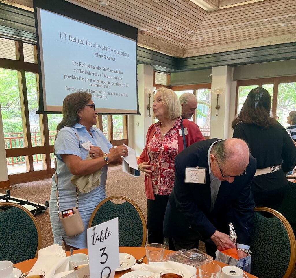 Outgoing president Bob LawrenceDr. Terry Sullivan, guest speakerHappy Birthday to Doug Laycock!Dr. Terry Sullivan, guest speakeCharles Roeckel appreciationFolakemi Elekolusi, Student Scholarship award recipientMembers enjoying a great luncheonMcKetta Award WinnersMary Knight, Treasurer and incoming President-ElectLael and DonnaDr. Terry Sullivan, guest speakeSybil whistles a happy tune while chatting with HermalindaFolakemi Elekolusi, Student Scholarship award recipientMembers enjoying a great luncheonMembers enjoying a great luncheonBob and Dottie LeeMembers enjoying a great luncheonCecil Martinez with new sponsor Nancy GuilloteauPre-luncheon greetingsHillary Hart gives Arts updateOutgoing president Bob LawrenceMembers enjoying a great luncheonMartha Hilley, Incoming PresidentKathy and Richard Armenta, Travel Group chairs – discussing 2025 and 2026 travel!2026 trips are being planned!Martha Hilley and “Eyes of Texas”Bob Lawrence and Student Scholarship recipientsMembers enjoying a great luncheon