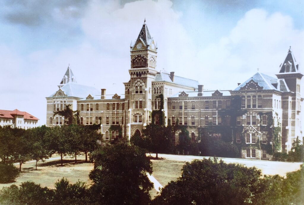 The first day of class was a disaster. Almost every freshman believed they were scheduled to take Dr. Battle’s 9 a.m. first-year course in Greek, where the classroom was on the fourth floor of Old Main and entirely too small. To repair the mess, registration was repeated, but without the assistance of “President” Ball.