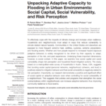 August 30, 2021, Filed Under: PublicationsIncreasing Adaptive Capacity for Floods New publication connects neighborhood connections to adaptive capacity to flooding Events like the recent Hurricane Ida and other cyclone activity in the Atlantic and Pacific only remind us that the impacts of flooding to property and well-being are ever present and dangerous. Increasing adaptive capacity to flood events is critical. Especially in socially and economically vulnerable communities. Our research demonstrates the important effect of social capital – the networks, cohesion, and trust – within one’s neighborhood for increasing mitigation behaviors.