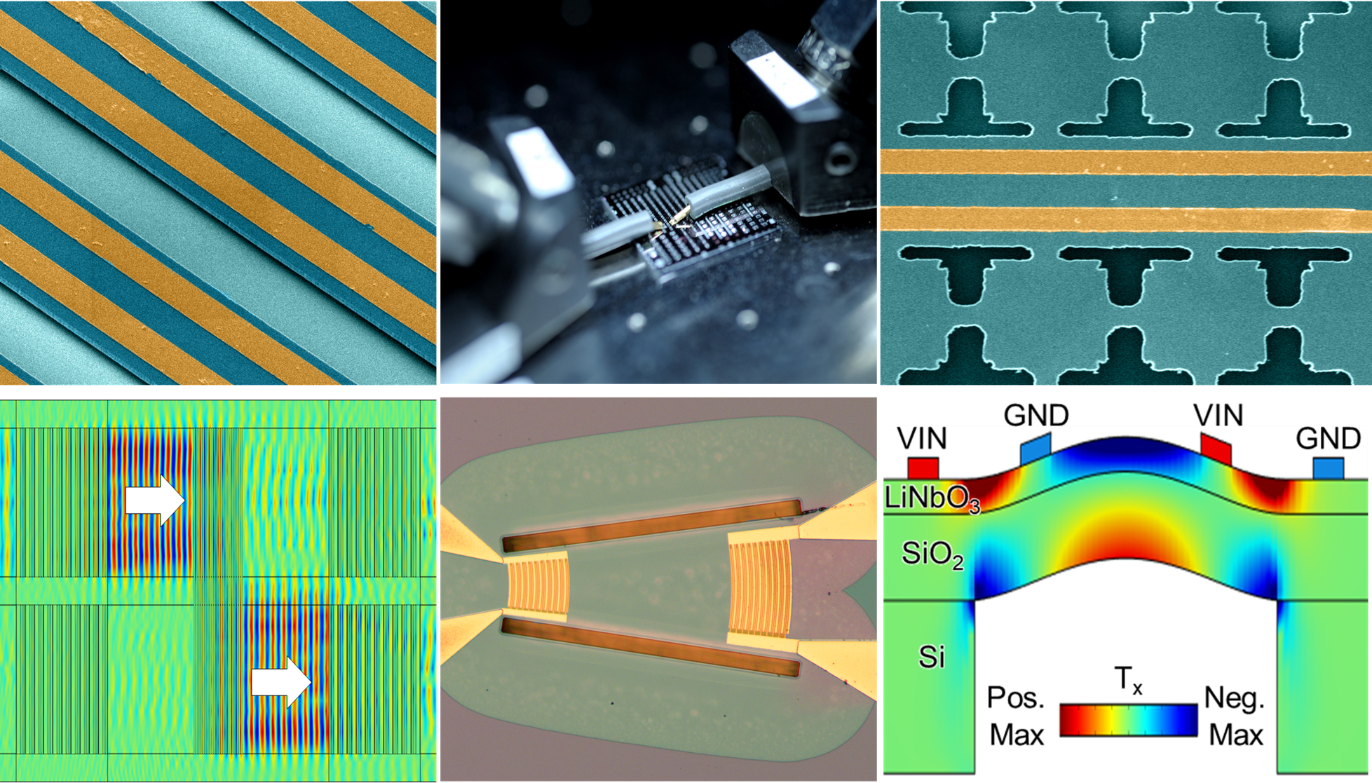 - Microfabrication and heterogeneous integration: piezoelectric thin-film deposition (e.g., ScAlN on diamond/Bragg reflectors), transferred and bonded wafers (e.g., multi-layer LN), EM-acoustics integration with physics-based modeling and precision microwave metrology.