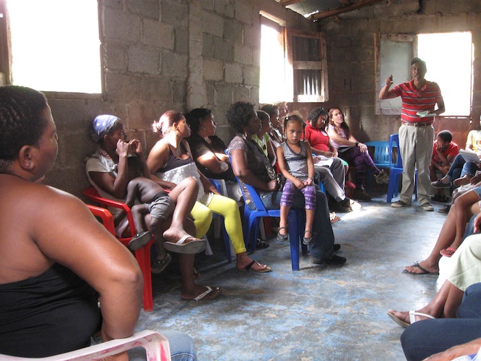 After the presentation, Marianela Pinales of the project partner organization Centro de Investigación y Acompañamiento a Mujeres y Familia (CIAMF) moderated a workshop between government and civil society representatives which started a still ongoing process to form a network of organizations to assist Los Platanitos in their community development efforts.
