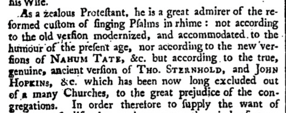 Nicholas, Brady, and Tate, Nahum. A New Version of the Psalms of David, Fitted to the Tunes Used in Churches. London: Printed by M. Clark, for the Company of Stationers, 1696. Internet Archive, https://archive.org/details/newversal00brad/page/n5/mode/2up. Accessed 2 Mar. 2023.