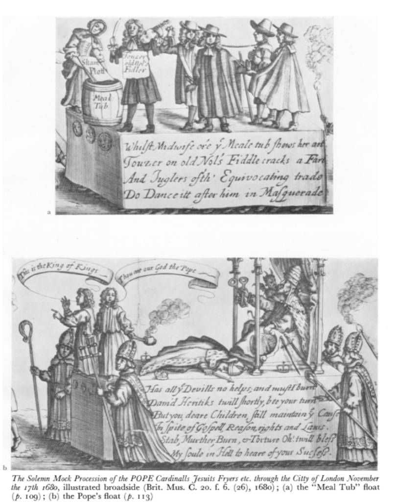 Williams, Sheila. Fig 1. “The Pope-Burning Processions of 1679, 1680 and 1681.” Journal of the Warburg and Courtauld Institutes, vol. 21, no. 1/2, 1958, pp. 104–18. JSTOR, https://doi.org/10.2307/750489. Accessed 6 Apr. 2023.