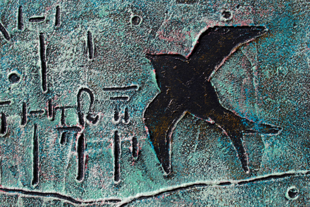 Back to my “Magna Graecia” project. This includes Artworks with Linear-B transcriptions inspired by Poems, Lyrics, Proverbs etc. of the „Grecanici”. The first approach includes about 30 paintings and more are added every week. The transcriptions were made directly from the original texts and not from the Modern-Greek translation. So, a “dying” language of Greek origins meets an ancient Greek “dead” script. I name here just a few of the poets of whom I transcribed a couple of verses, I hope the list will be even longer: Vito Domenico Palumbo, Domenicano Tondi, Franco Corlianò, Salvatore Tommasi, Brizio Montinaro, the brothers Salvatore and Agostino Siviglia, Salvino Nucera, Mimmo Nucera, Bruno Casile, Mastr’Angelo Maesano, Vincenzo Mesiani, Francesca Tripodi, Angela Campi Colella, Pippo Condemi.