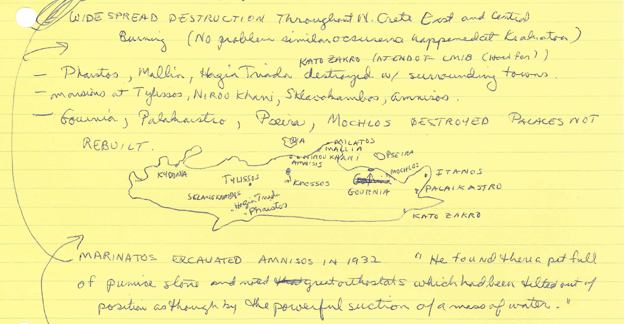 The first was my main ugrad mentor at Boston College (1969-73) and the teacher who introduced me to the Greek Bronze Age. David Gill, S.J. had studied at Harvard, completing his Ph.D. under Sterling Dow on Greek Cult Tables. Dow, mainly a classical epigrapher and historian, had developed an interest in what were then called Minoan inscriptions after the Ventris decipherment of the Linear B script in June 1952. As a consequence, Gill’s two-semester ancient Greek history course spent many weeks on Aegean prehistory, during which I reported on what then was early scientific research on the volcanic eruption of Thera. Actually, I contracted mononucleosis that semester and by the time I recovered, Gill suggested that instead of writing up a report, I deliver a whole class lecture on the readings I had done. I agreed at first, thinking that this would be easier. Then I realized I had to present a 50-minute lecture to an audience of about 65 students, most of whom I did not know. I was so terrified I memorized the entire talk. How I avoided a relapse into exhaustion illness I do not know.
