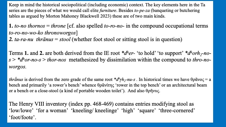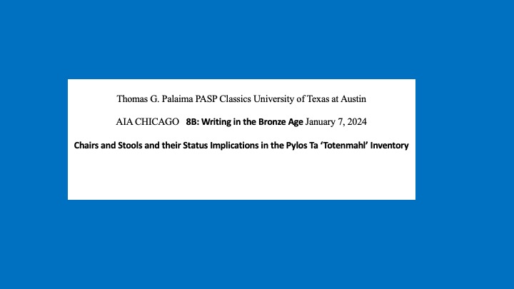 Tom Palaima “Chairs and Stools and their Status Implications in the Pylos Ta ‘Totenmahl’ Inventory”