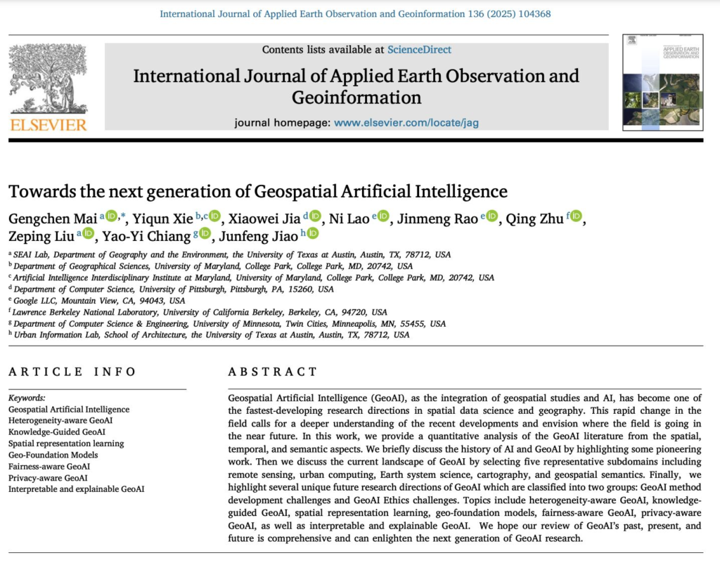 Our paper, covering the past, present, and future of GeoAI, has been published in the International Journal of Applied Earth Observation and Geoinformation.