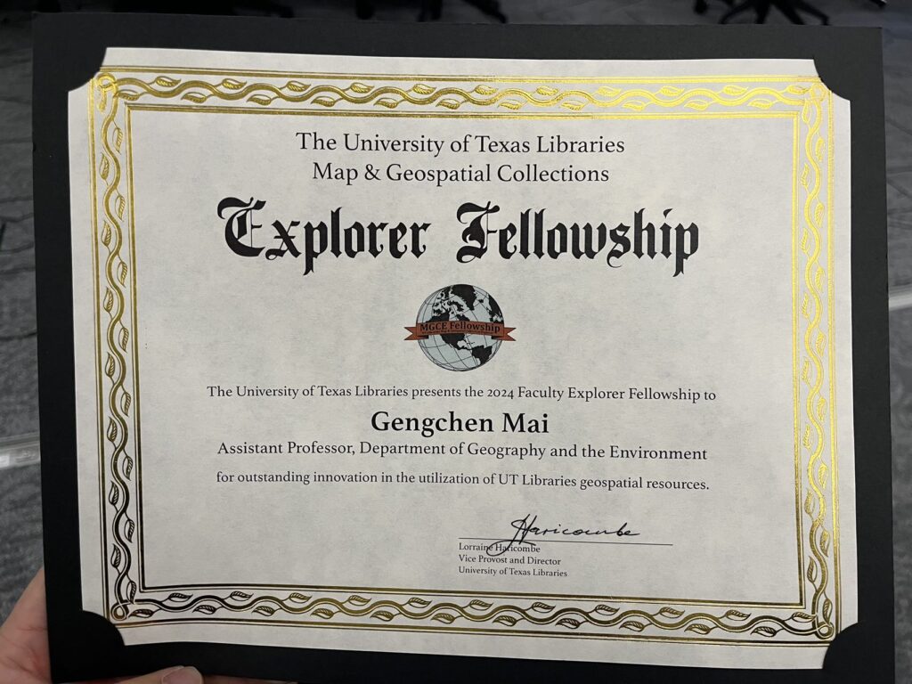 Out of the 15 Fellows selected in UT Austin, Zeping is the only recipient from the field of Geography — while all other awardees come from Electrical Engineering, Computer Science, or related disciplines. His recognition underscores not only his individual excellence, but also the growing importance of Geospatial Artificial Intelligence (GeoAI) as a frontier area in AI research.
