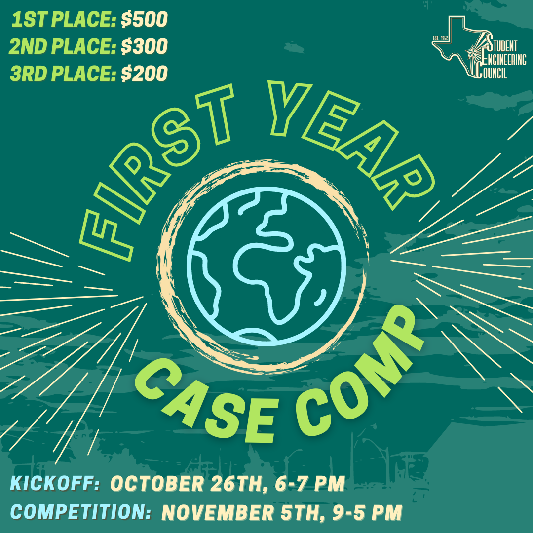 This was the graphic for SEC’s Recruitment! Come apply for SEC in the fall!This was the cover graphic for this year’s Halloween Canned Food Drive, a month-long fundraising effort through the Central Texas Food Bank to help fight hunger!This is one of the first designs we’ve made for this year, our annual Welcome Day of Service targeted towards first-years to meet new people and serve the greater Austin community!This was the graphic for Makeathon- A design competition for Cockrell Students.This is one of our designs for our annual summer initiative Member Monday! This is used on our Instagram to showcase our Members-at-Large as well as SEC’s member organizations to the Cockrell student body.This graphic was designed for the Academic Affairs committee’s event, First Year Case Competition, where first years get to pitch a design solution to a given prompt!