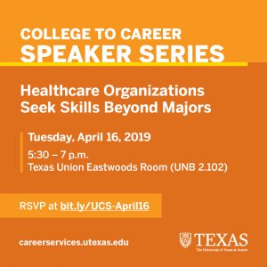 April 9, 2019, Filed Under: Career Services, Career Services EventsSpeaker Series: Healthcare Organizations Seek Skills Beyond Majors Healthcare Organizations Seek Skills Beyond Majors, featuring Stephanie Pallante of Cigna and David Ong of MAXIMUS Click on the image to RSVP.