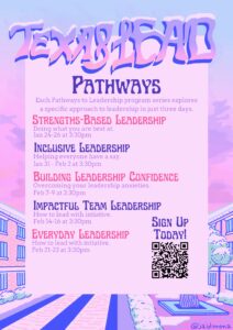 February 13, 2023, Filed Under: Leadership, Student LifeTake Control of Your Leadership Journey! Hello! Texas Leadership Education and Development (LEAD) is currently accepting applications for the “Pathways to Leadership” program. This 3-day program allows participants to choose a specific area of leadership that they’d like to develop as they continue their journeys of becoming the best fully-realized leaders. This program focuses on empowering students with practical skills and insightful knowledge to overcome common leadership pitfalls, allowing them to enter new leadership positions with both confidence and competence! Take control of your leadership experience by enrolling in one (or more!) of the following Pathways to Leadership: Building Leadership Confidence (Feb. 7-9) Impactful Team Leadership (Feb. 14-16) Everyday Leadership (Feb. 21-23) Participants can expect to gain a whole suite of new skills by participating in this program, and will receive a Texas LEAD pen, sticker, and T-shirt, upon completion of one of these programs. At UT Austin “What starts here changes the world”, let Texas LEAD help. Register now, by following THIS LINK. Still have questions? Reach out to texaslead@austin.utexas.edu, or give us a call at (512)232-5163.