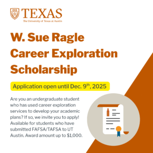 December 2, 2025, Filed Under: Career Services, ScholarshipsW. Sue Ragle Career Exploration Scholarship Open – Deadline 12/9