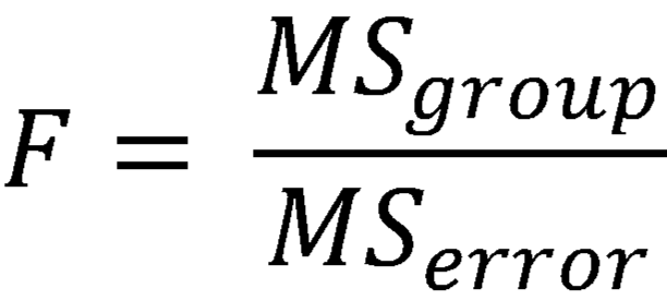 The test statistic, F, where MSgroup is the mean squared error of between-group variance and MSerror is the mean squared error of within-group variance:
