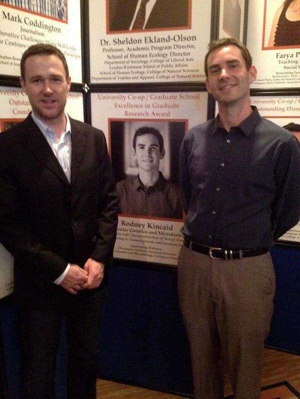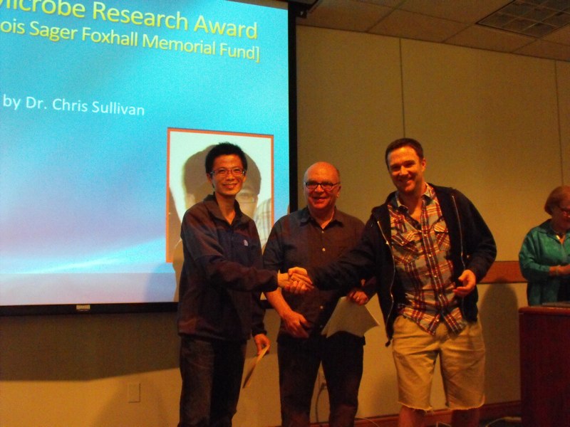 Rodney and CJ receiving the 2013 MGM Golden Microbe research and teaching awards