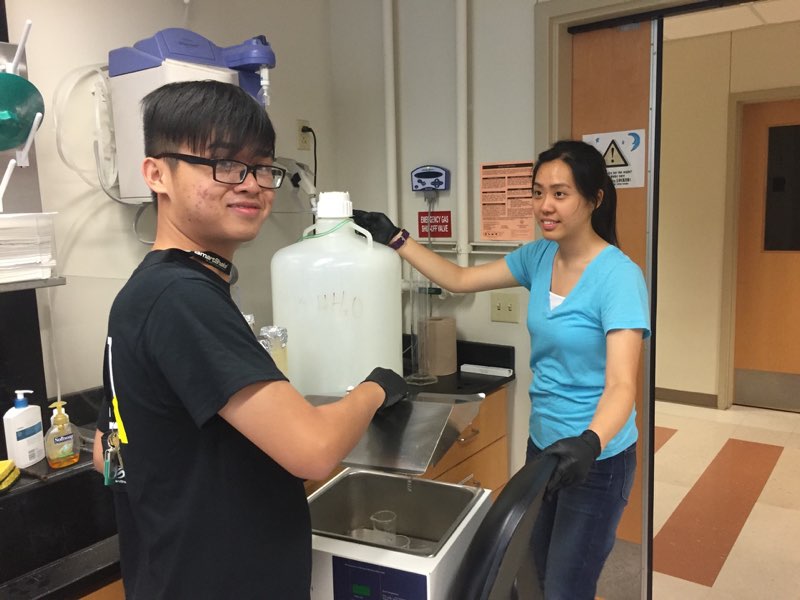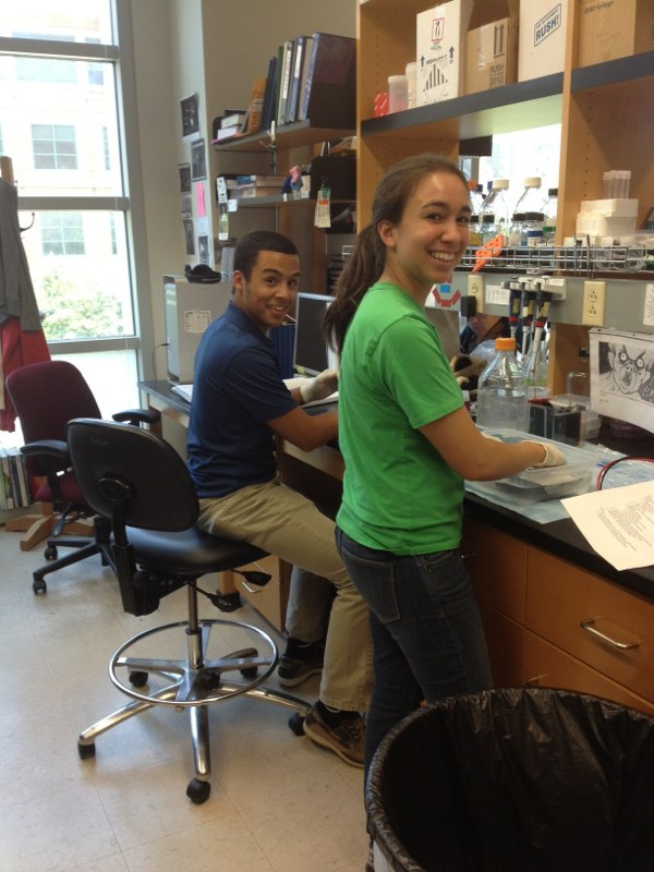 New summer high school intern Matt and undergrad Karen are all smiles