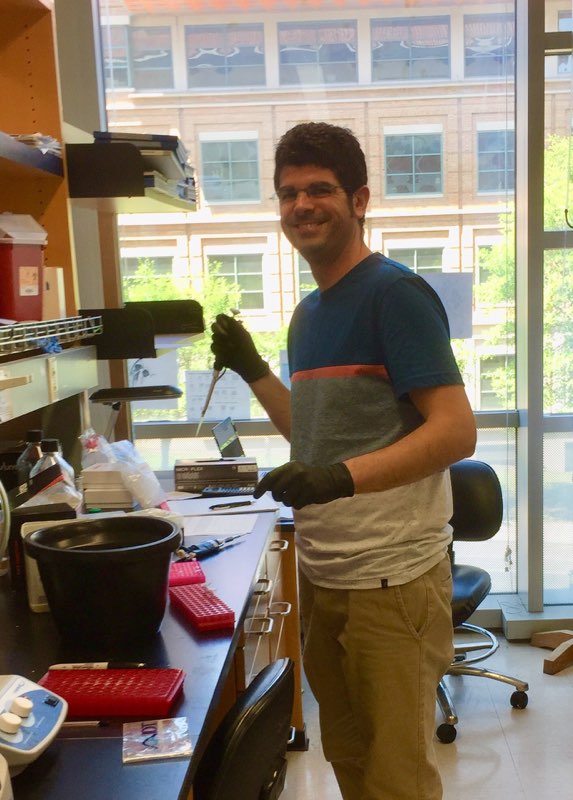 Digging undergrad Victor’s new self-funded lab coat. Note the UT longhorn.