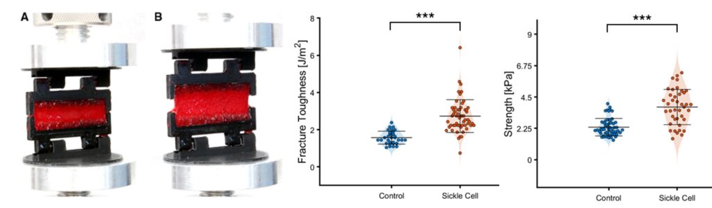 Sickle cell disease is a blood disorder characterized by the production of abnormal red blood cells that primarily effects people of African descent. This project aims to identify fundamental biomechanical properties of blood clots in effort to understand, prevent and treat adverse events including pulmonary embolism, ischemia and pain. In collaboration with the Rausch Group at the University of Texas at Austin and Alicia Chang of the Blood and Cancer Center at the Ascension Seton Dell Children’s Hospital.