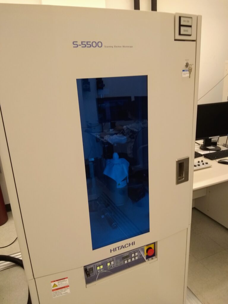 Hitachi S-5500 SEM provides sub-nanometer resolution and is also capable of imaging in scanning transmission electron microscopy (STEM) mode. The bright field (BF) and dark field (DF) Duo-STEM detector allows simultaneous observation of BF and DF STEM images. The equipped energy dispersive spectroscopy (EDS) can probe the chemical composition of materials at nanometer scale.
