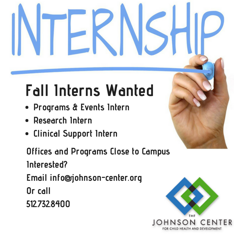The Johnson Center for Child Health & Development is a non-profit organization that provides supports and services to children with autism, developmental delays and other special needs. We serve children and families from all over the country. We host a number of of community events and educational opportunities for families and professionals, including holiday events, educational webinars, and onsite workshops. We are looking for a dedicated intern to help plan, promote, and support these critical events and classes.