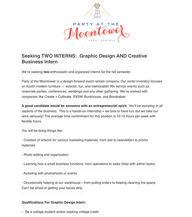 We are seeking a few unpaid interns to assist the students with their projects. In the past, interns have helped with tasks like making copies, scanning, translating documents, assembling materials for meetings, or assisting with mailing campaigns. Spanish language skills are a plus, but are not required.