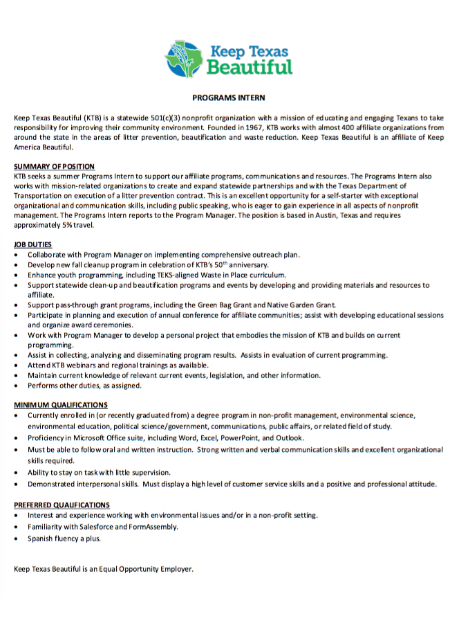 - Undergraduate Internships (for all undergrads)