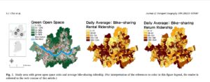 January 28, 2024, Filed Under: ProjectsCombatting the mismatch: Modeling bike-sharing rental and return machine learning classification forecast in Seoul, South Korea Abstract: Bike-sharing is rapidly gaining popularity due to health, transportation, and recreational benefits. As more people use bike-sharing, the burden of reallocating bikes will increase because of the mismatch between outgoing and incoming bikes. Optimizing truck routes, incentivizing users, and crowdsourcing are common suggestions to mitigate rebalancing issues. This research aims to provide a procedure to adjust landscape conditions as an alternative strategy. Comprehensive landscape metrics are quantified by FRAGSTATS analysis. Using public bikesharing data in Seoul, South Korea, we analyzed spatial and temporal mismatch characteristics. Hot spot analysis was conducted to identify hot and cold spots of bike-sharing use in two scenarios: outgoing and incoming trips. This was used to generate tree-based binary ensemble machine learning classification models. Shapley Additive exPlanations (SHAP) values were calculated between hot and cold spots to understand how landscape characteristics and other determinants affect the mismatch. Our results suggest that weather and bike-sharing related factors significantly affect bike-sharing use. Transportation land use and landscape characteristics like contiguity, shape, area, and edge significantly contribute to labeling. The findings of this study can help bike-sharing operators better navigate their bike-sharing services. For more information, please visit : https://www.sciencedirect.com/science/article/pii/S0966692323000595 Share this: