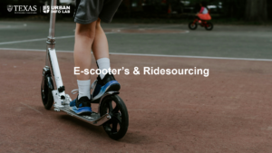 January 28, 2024, Filed Under: ProjectsUnderstanding E-Scooter Incidents Patterns in Street Network Perspective: A Case Study of Travis County, Texas Abstract: Dockless electric scooter (E-scooters) services have emerged in the United States as an alternative form of micro transit in the past few years. With the increasing popularity of E-scooters, it is important for cities to manage their usage to create and maintain safe urban environments. However, E-scooter safety in… read more