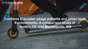 April 20, 2024, Filed Under: ProjectsDockless E-scooter usage patterns and urban built Environments: A comparison study of Austin, TX, and Minneapolis, MN Abstract: Recent years have witnessed a rise in dockless shared electric scooters (e-scooters) in American cities, offering a solution for short-distance car trips. However, research on e-scooter usage patterns and their urban connection is lacking. This study addressed this gap by analyzing e-scooter ridership in Austin and Minneapolis. Results revealed… read more