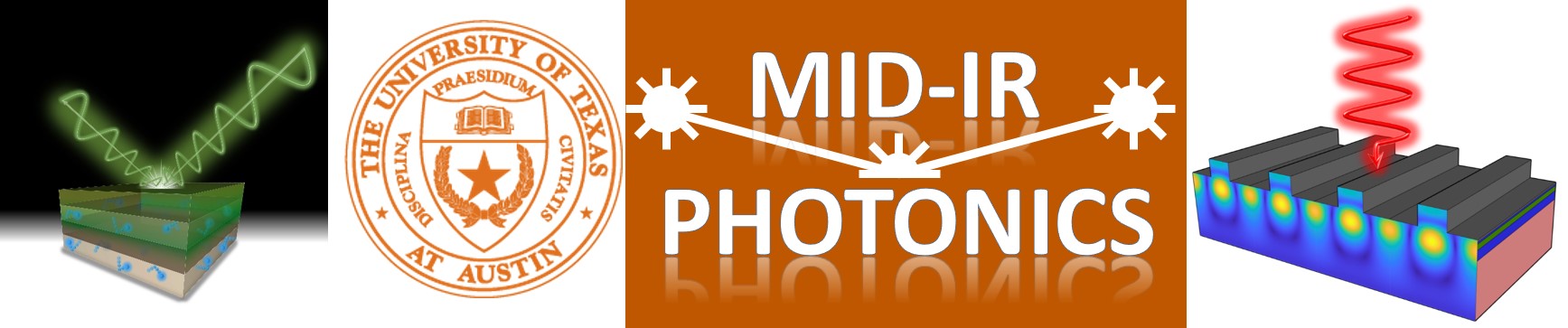The Mid-Infrared Photonics group is a research group in the University of Texas Austin’s Department of Electrical and Computer Engineering, in the UT Microelectronics Research Center (MRC). Our group studies mid-IR and far-IR emitters, detectors, and photonic devices for applications in Defense and Security, Sensing, and Communications.