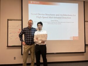 April 12, 2024, Filed Under: UncategorizedYinan Wang successfully defends!! Congratulations to Yinan Wang on his successful thesis defense today, entitled “Novel Device Structures and Architectures for High-Speed Mid-Infrared Detection”. Yinan will be joining Ruochen Lu’s group and working on RF MEMs/NEMs devices.
