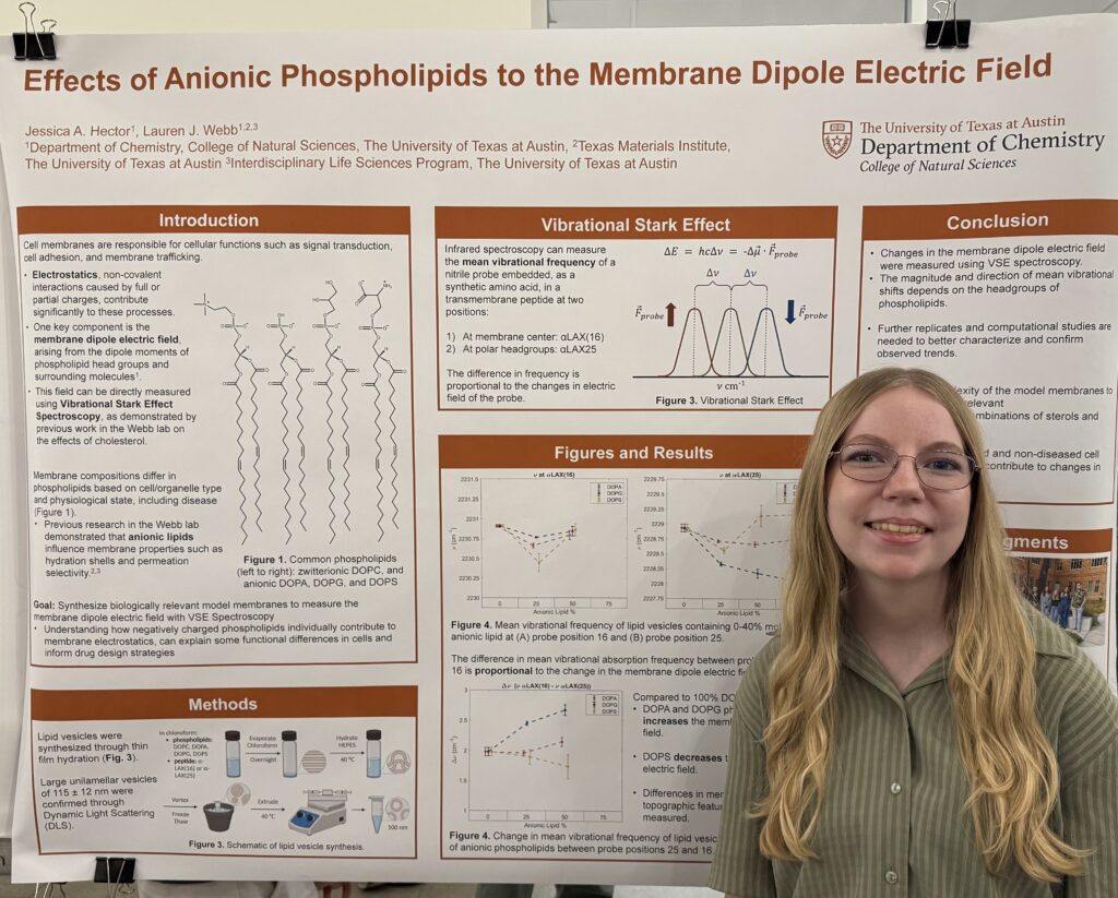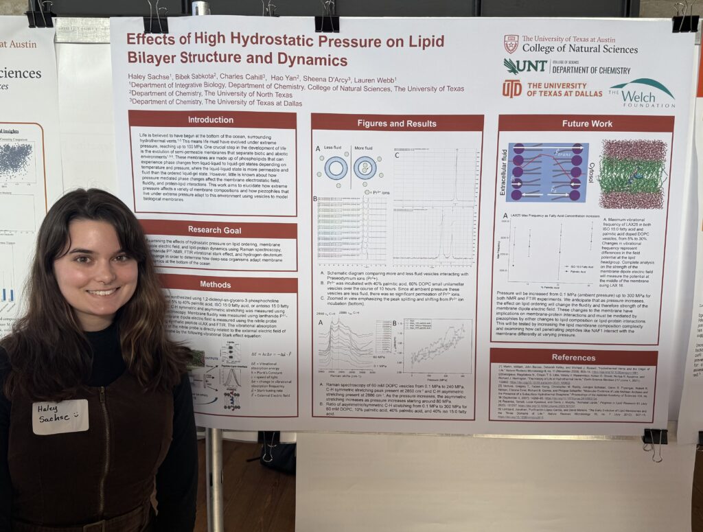 Photos 4/11/25: Jessica presents her poster at the Technology & Science Undergraduate Research Forum. 3/7/25: Haley presents her poster at the Department of Molecular Biosciences Annual Retreat. 3/7/25: Taylor presents her poster at the Department of Molecular Biosciences Annual Retreat.