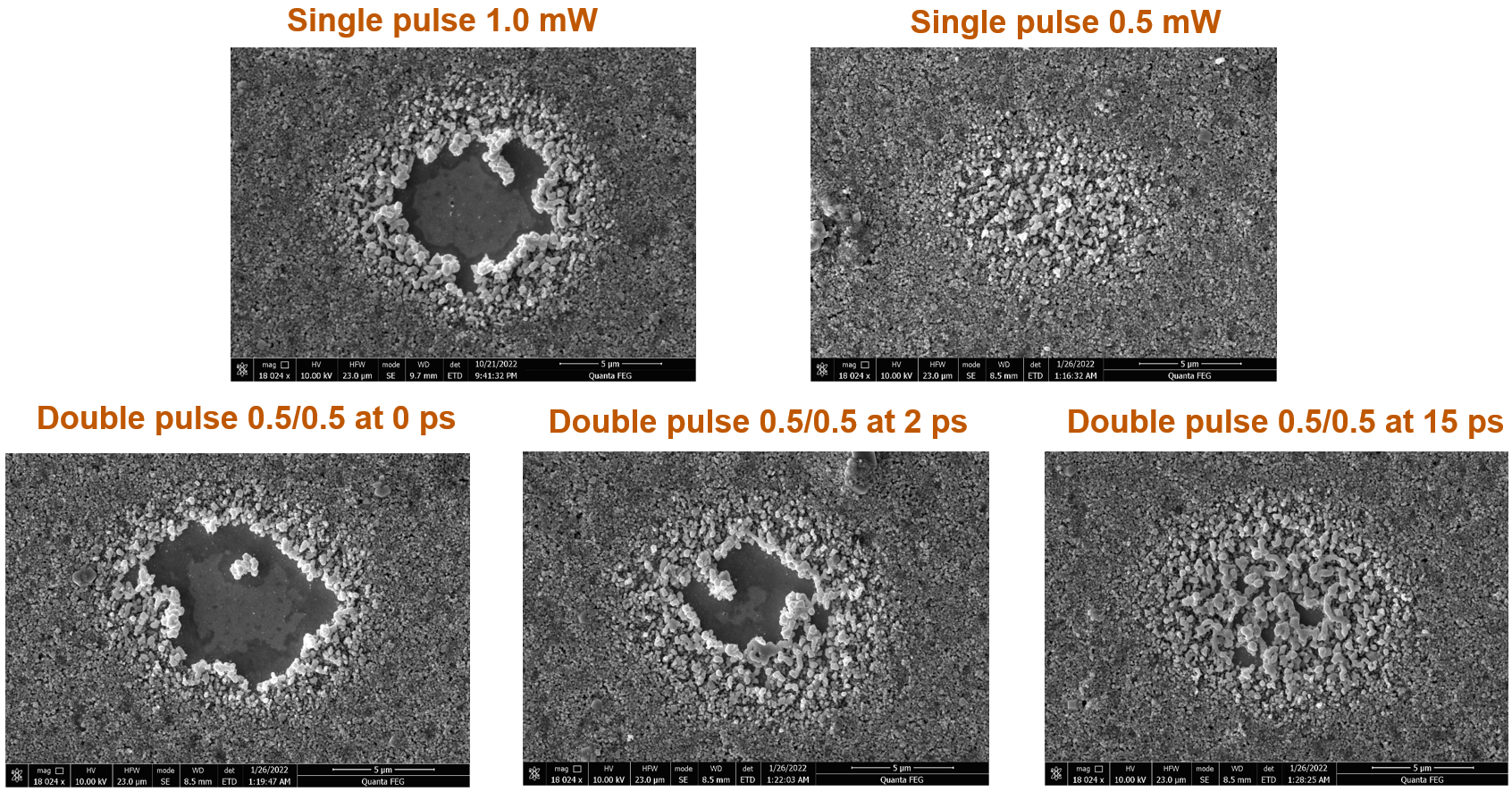 Figure 2. Sintering results of Cu NPs with single and double pulsed fs laser.