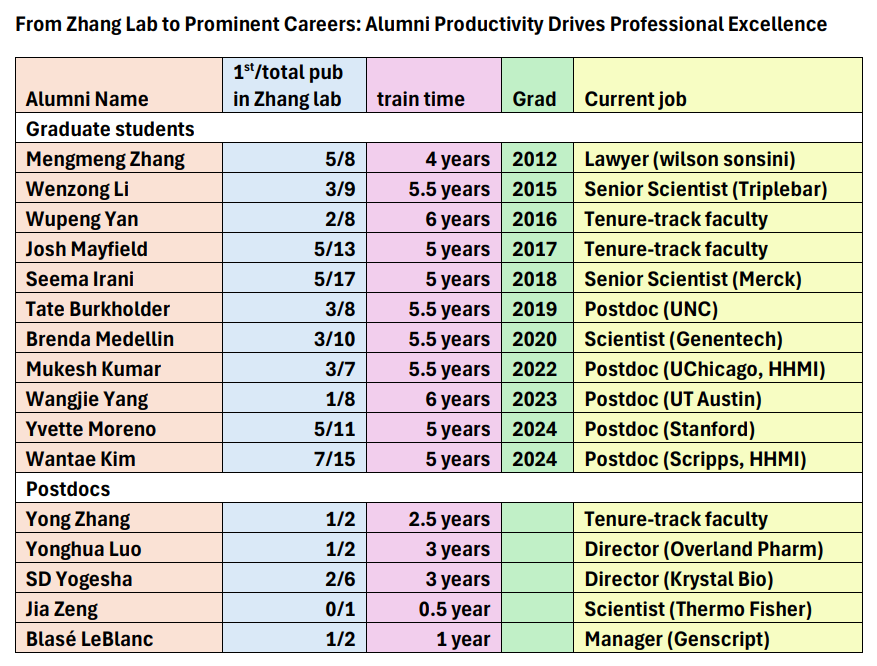 Previous students’ output and career Zhang Lab alumni graduate efficiently with multiple papers, paving the way for successful careers in academia and industry